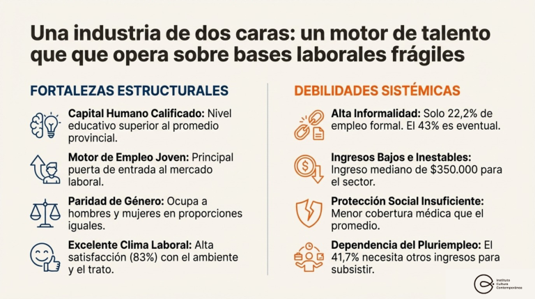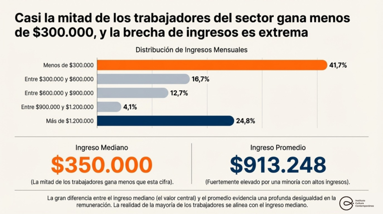 Sin embargo, el informe también expone algunas paradojas del sector. A pesar de su capacidad de generar empleo masivo, la fuerza laboral se caracteriza por una alta eventualidad:  el 15.6% cuenta con contrato formal y el 41.7% busca fuentes alternativas de ingresos para subsistir. El ingreso mediano mensual se ubica en $350.000,  por debajo del promedio de $913.248, lo que evidencia una  desigualdad interna.